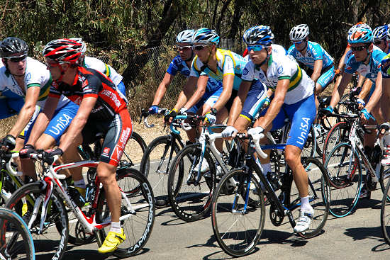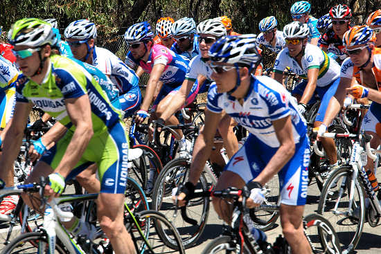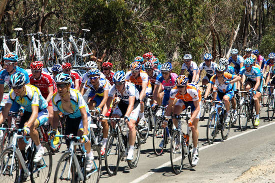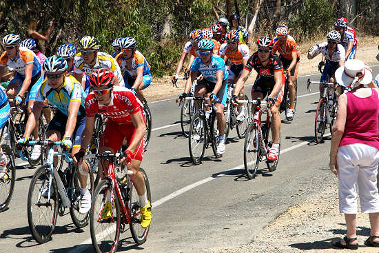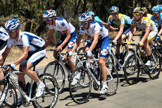 ![]() Far left - Stuart O'Grady (#51) team leader Saxo Bank, winner of the 1999 & 2001 Tour Down Under |