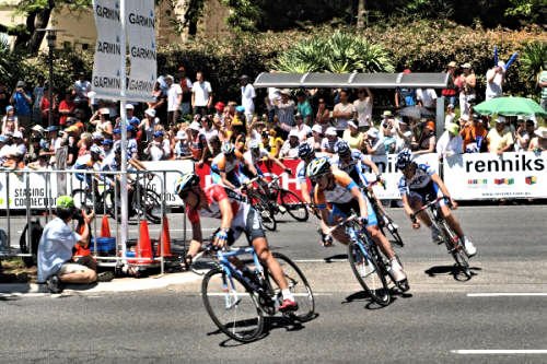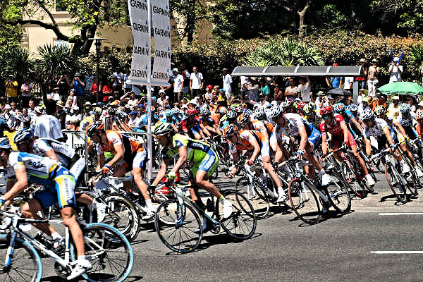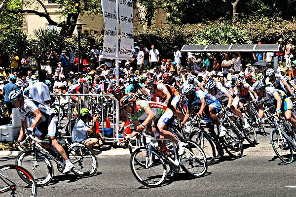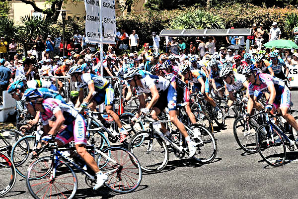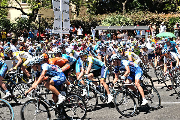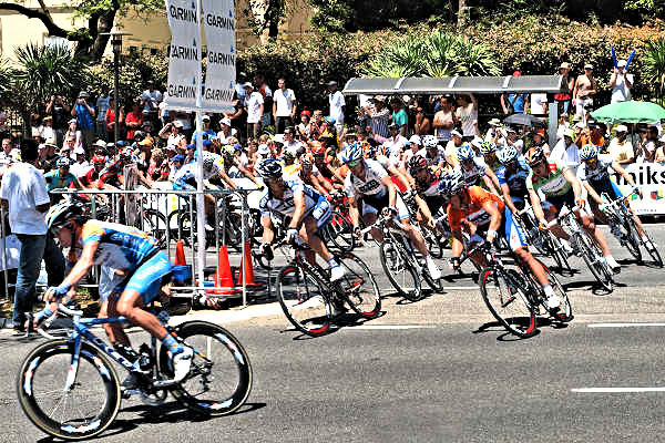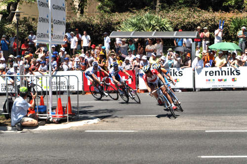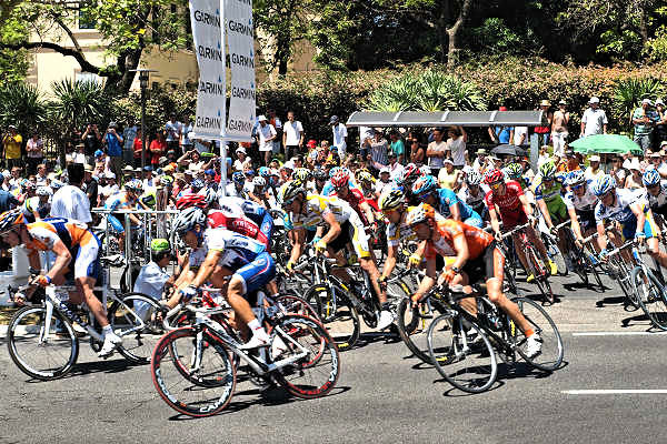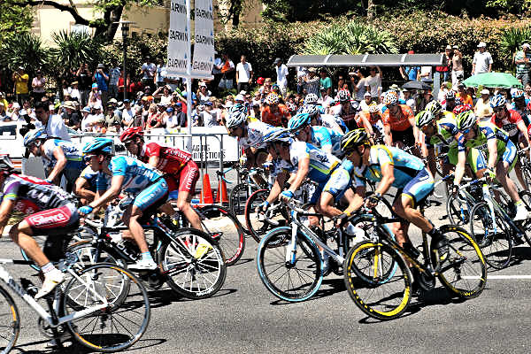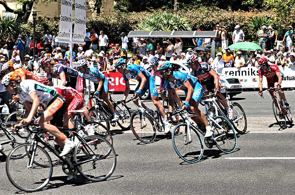 ![]() The last of the Peloton head down the back straight after the hairpin on Lap 11 |