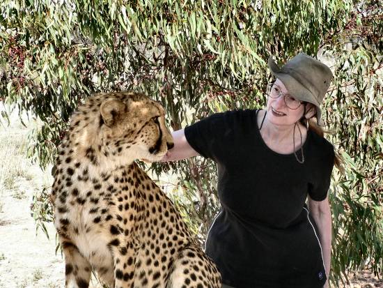 ![]() From left: cheetah keeper, cheetah, Carole-Anne |