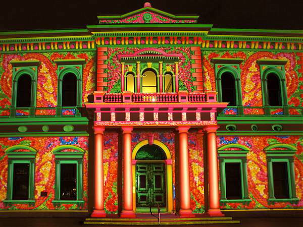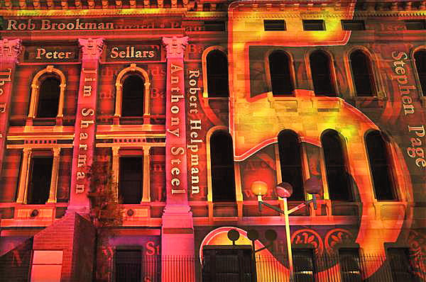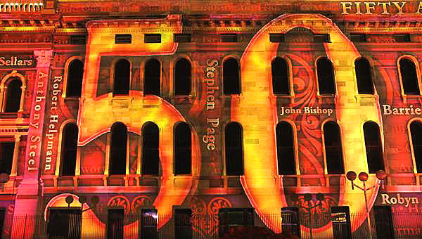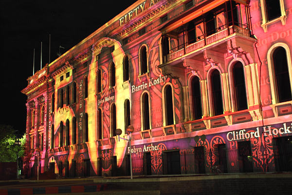 Living ADELAIDE "Northern Lights 2010" projector lighting of Adelaide's classic buildings on North Terrace
