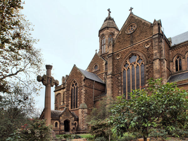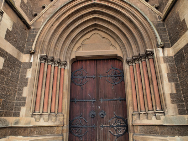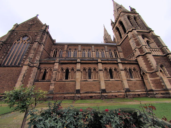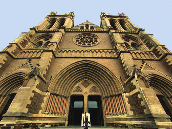 ![]() The architecture of St. Peter's Cathedral is in the English Gothic style but the west front with its rose window and twin spires is French in inspiration. |