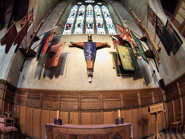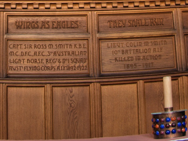 ![]() Below: crop from the above photo showing two of the memorial pieces under the Christus Rex |