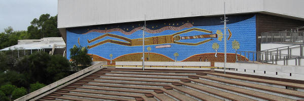 ![]() Aboriginal mural backing the Amphitheatre of the Adelaide Festival Centre |